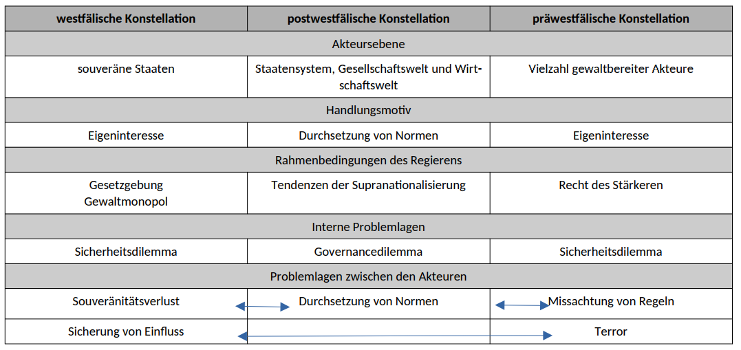 Tabellarische Darstellung in: Nielebock Th. (2008): Sicherheitspolitische Herausforderungen im 21. Jahrhundert – eine Annäherung, in Deutschland und Europa, Heft 55. (vergriffen)