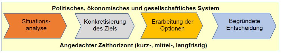 - Welche systemischen Rahmenbedingungen müssen berücksichtigt werden? (z.B. in Deutschland im politischen Bereich: Grundgesetz, im ökonomischen Bereich: Soziale Marktwirtschaft, im gesellschaftlichen Bereich: Wertorientierung)