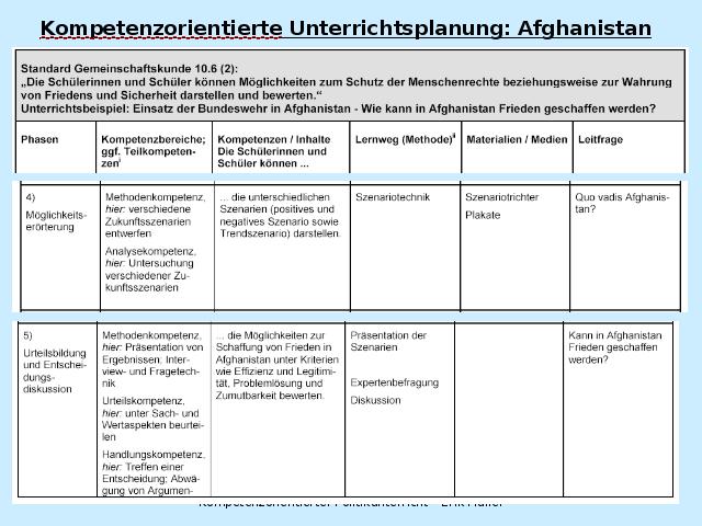 Kompetenzorientierte Unterrichtsplanung: Afghanistan