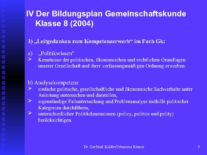 Diese Seite ist Teil einer Materialiensammlung zum Bildungsplan 2004: Grundlagen der Kompetenzorientierung. Bitte beachten Sie, dass der Bildungsplan fortgeschrieben wurde.