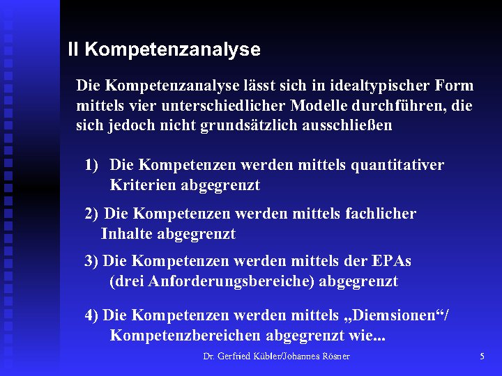 Weiter: Kompetenzanalyse I (nach Ziener)