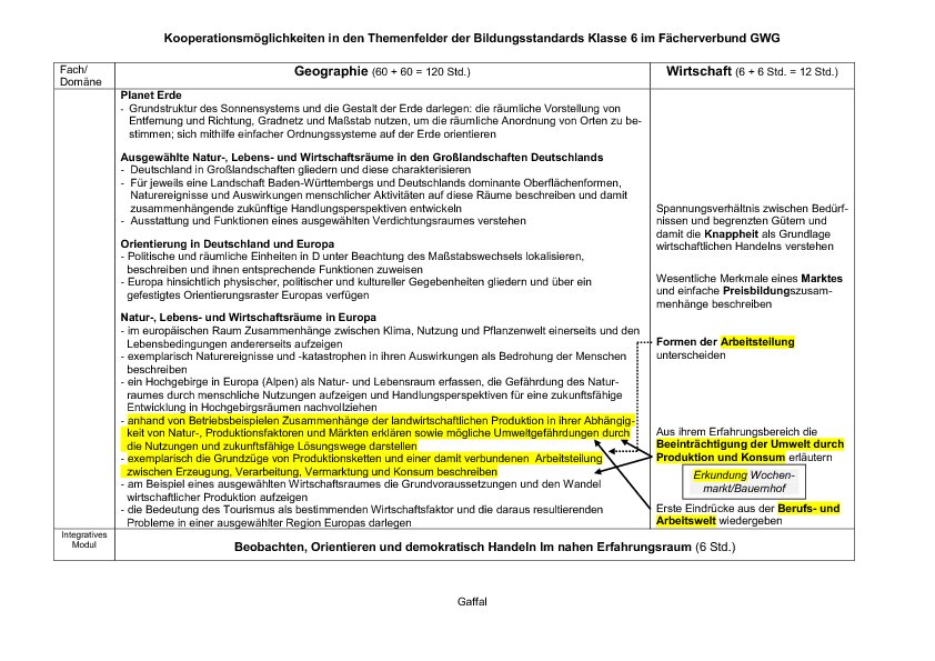 Die folgende Übersicht zeigt thematische Überschneidungen und Kooperationsmöglichkeiten bei den Standards 6 im Fach Geographie und in der Domäne Wirtschaft.