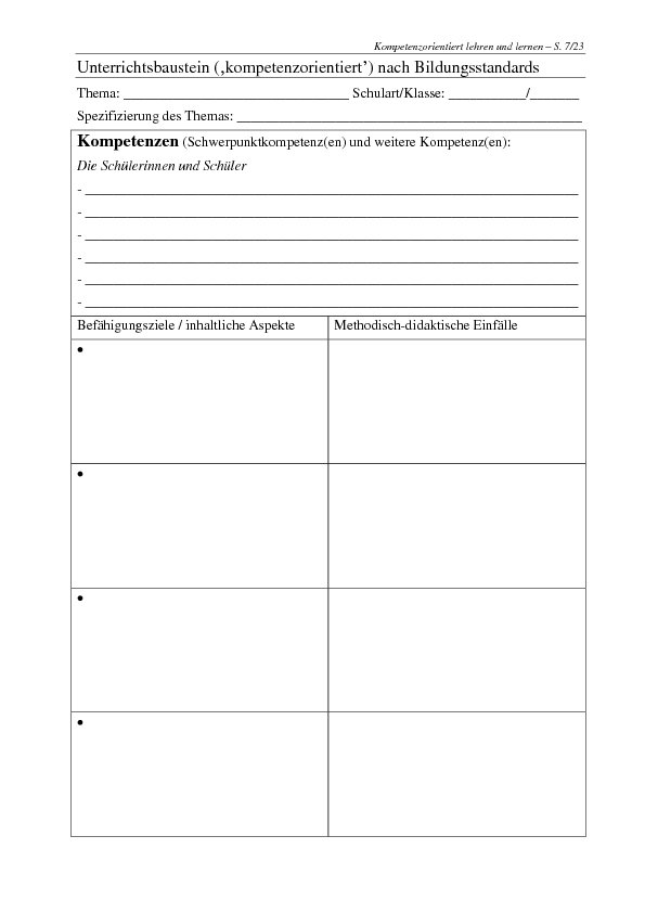 Diese Seite ist Teil einer Materialiensammlung zum Bildungsplan 2004: Grundlagen der Kompetenzorientierung. Bitte beachten Sie, dass der Bildungsplan fortgeschrieben wurde.