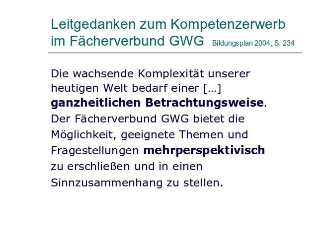 Leitgedanken zum Kompetenzerwerb im Fächerverbund GWG I