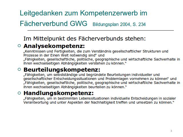 Leitgedanken zum Kompetenzerwerb im Fächerverbund GWG II