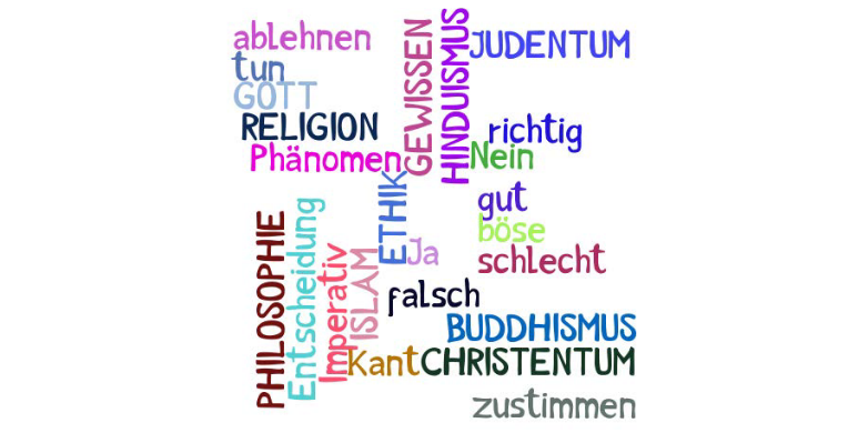 Bildquelle Wortwolke (rechts): © Gabriele Klingberg (ZPG Katholische Religion)