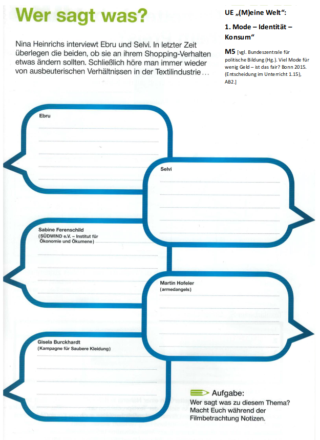 Quelle M5: vgl. Bundeszentrale für politische Bildung (Hg.). Viel Mode für wenig Geld –ist das fair? Bonn 2015. (Entscheidung im Unterricht 1.15), AB2