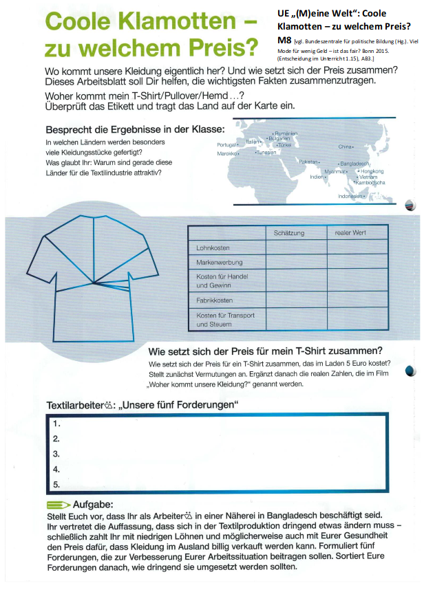 Quelle M8: vgl. Bundeszentrale für politische Bildung (Hg.). Viel Mode für wenig Geld – ist das fair? Bonn 2015. (Entscheidung im Unterricht 1.15), AB3