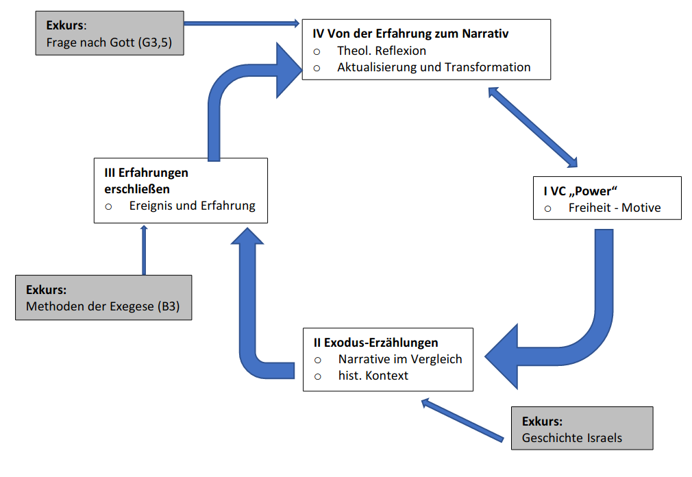 Das vorliegende kleine Lernvorhaben – im Kontext der Unterrichtseinheit „Sprechen von Gott – Gottes Wort in Menschenwort“ möchte dieses den Schülerinnen und Schülern vermitteln, indem ausgehend von dem Videoclip „Power“ Exodus-Erfahrungen erfasst, strukturell beschrieben, alttestamentlich rückgebunden reflektiert und dann in ein eigenständig formuliertes Exodusnarrativ transformiert werden.
