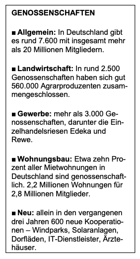 Etwa zwei Drittel der deutschen Bevölkerung halten Genossenschaften für vertrauenswürdige, zuverlässige und stabile Unternehmen, wie eine repräsentative Umfrage aus dem vergangenen Jahr ergab. Recht haben sie: Dank ihrer demokratischen Struktur können die Firmen nicht von Großinvestoren gekapert oder ausgeschlachtet werden. Außerdem sorgen Genossenschaftsverbände durch ihre Aufsicht für ein hohes Maß an Sicherheit. Durchschnittlich gehen in Deutschland weniger als zehn Genossenschaften pro Jahr pleite – ein hervorragendes Ergebnis bei einer Gesamtzahl von etwa 7.600 Betrieben dieser Gesellschaftsform.