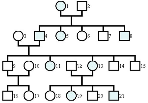 - Betrachtet den Stammbaum genau und überlegt, auf wenn die Mütter bei diesem Stammbaum vererben?