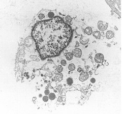 Zelle vor der Apoptose (Elektronenmikroskop. Bild: 7.000x Vergrößerung) |