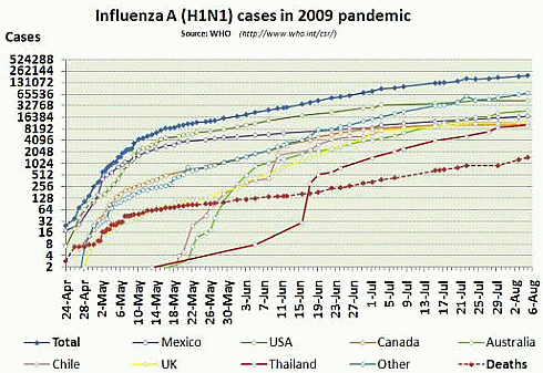 http://commons.wikimedia.org/wiki/File:Influenza-2009-cases-logarithmic.png
