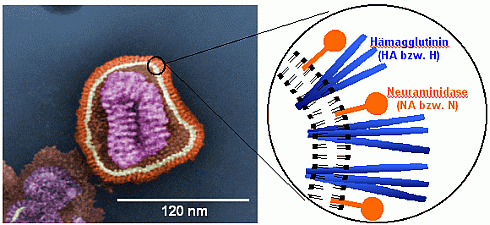 Influenza-A-Viren werden in erster Linie nach den Oberflächenproteinen mit