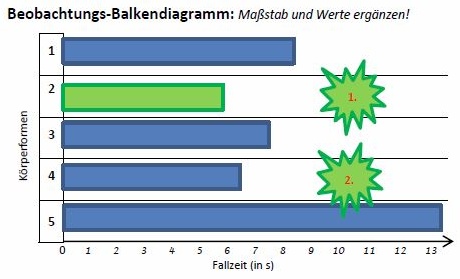 - Man bestimmt mit der Stoppuhr die Zeit, die die verschiedenen Körper zwischen Start- und Ziellinie benötigen.