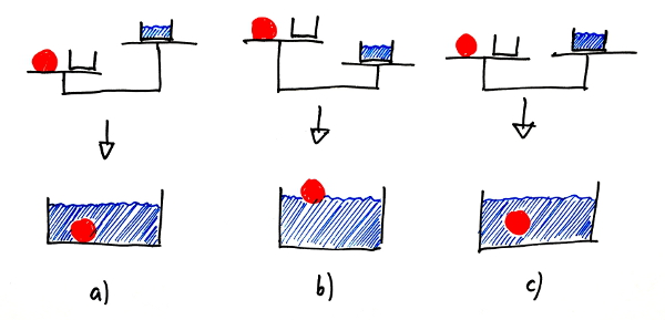 - Stellt den Gegenstand links auf die Balkenwaage! Stellt das übergelaufene Wasser rechts auf die Balkenwaage!
