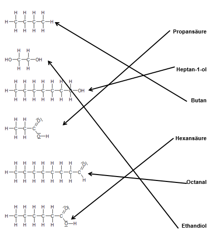 Ordne den Strukturformeln mit Pfeilen den richtigen systematischen Namen zu.