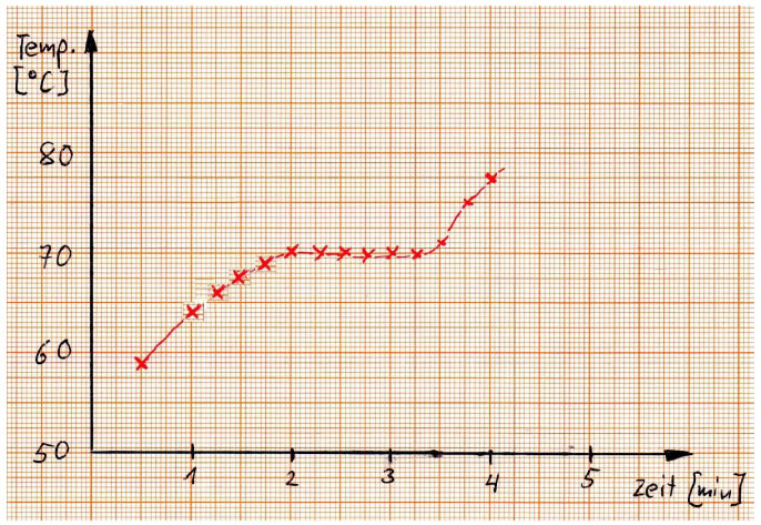 - Markiere auf der y-Achse die Schmelz- und Erstarrungstemperatur