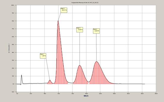 Die Identifizierung der Gase im Gemisch lässt sich durch Vergleichschromatogramme der Reinstoffe vornehmen bzw. durch Chromatografieren definierter Gasgemische. Die Auswertung lässt sich durch den Vergleich der Flächen unter den Peaks so erweitern, dass auch Gehaltsangaben möglich sind.
