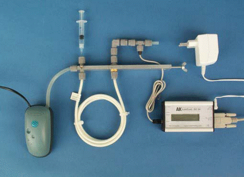Der LOW-COST- Gaschromatograph AK LCGC04 wird nach Abbildung aufgebaut und die Aquarienpumpe angestellt.