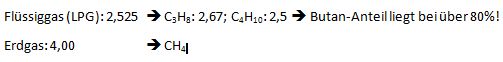 Ebenso wird in der Norm das Wasserstoff-Kohlenstoff-Verhältnis jeweils für die Gemische festgelegt: