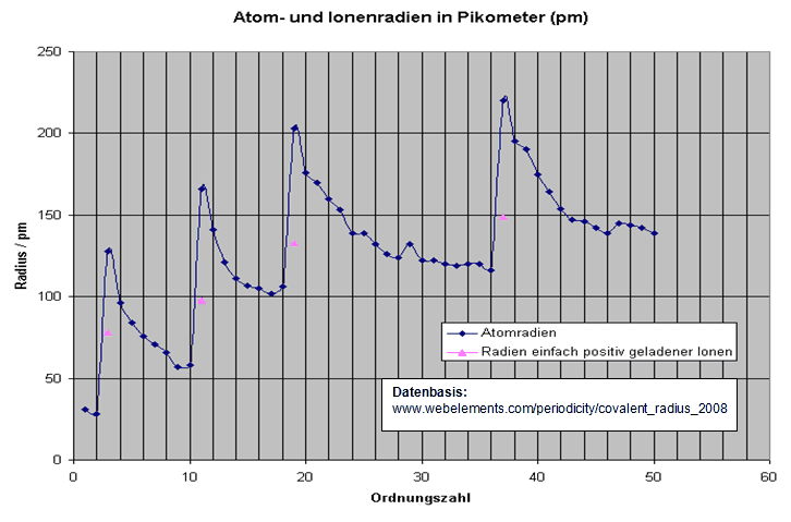 Betrachte das Schaubild mit der Angabe der Atomradien.