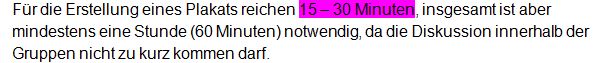 Bedarf ergänzt. Das fertige Plakat wird verkleinert kopiert und an alle verteilt.