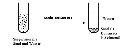 Suspension: heterogenes Stoffgemisch von einem Feststoff in einer Flüssigkeit.