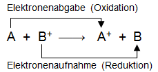 Die Gesamtreaktion lässt sich mit einer Reaktionsgleichung darstellen, in der der Elektronenübergang gezeigt wird.