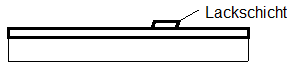 Die Bereiche der Kupferschicht, die nicht weggeätzt werden sollen, werden mit einer wasserunlöslichen Lackschicht abgedeckt. Die übrigen Bereiche der Kupferschicht werden mit einem Ätzmittel entfernt.