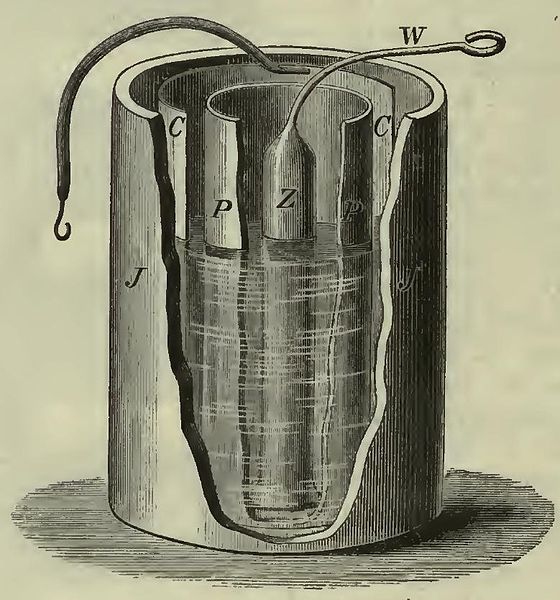 Historisches Daniell-ElementIm Außenbehälter J befinden sich – von außen nach innen: