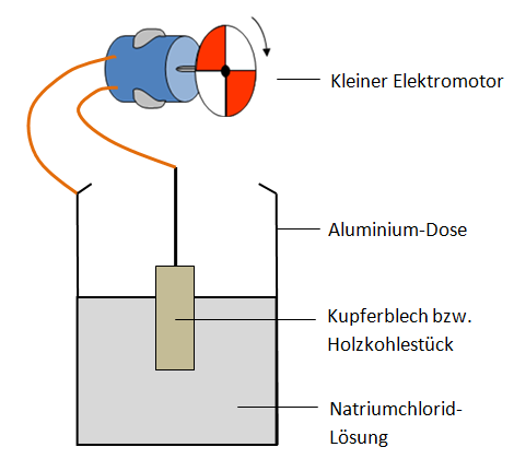 Als Elektrolyt dient Natriumchlorid-Lösung