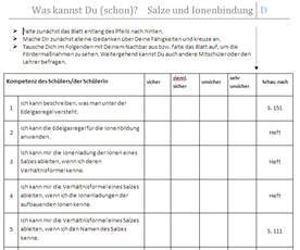 Etwaige Defizite oder Unsicherheiten können dann im Folgenden durch die entsprechenden Fördermaßnahmen bzw. den Austausch mit Mitschülern oder dem Lehrer angegangen werden. Durch das Bearbeiten der anschließenden Aufgaben, die wiederum gezielt bestimmte Kenntnisse und Fertigkeiten ansprechen, können die Schüler im Anschluss selbständig ihre Selbsteinschätzung überprüfen. Ein erneutes Ankreuzen der am Ende soll den Lernzuwachs verdeutlichen bzw. immer noch vorhandene Lücken nochmals deutlich machen.