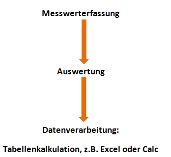 Die Weiterverarbeitung und Auswertung der Daten kann in einer Tabellenkalkulation (Excel oder Calc) erfolgen: