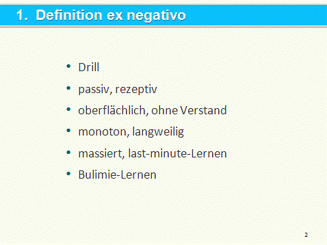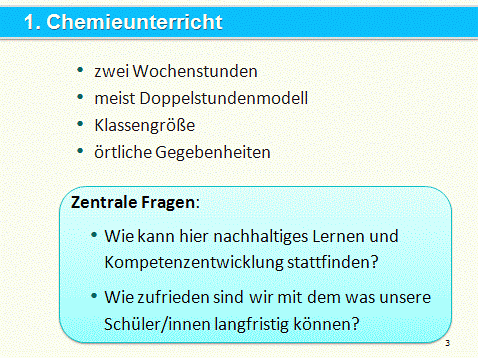Große Klassen und erarbeitender in fragend entwickelnder Form erschweren es Zeit zum Üben bereitzustellen.