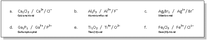 Aufgabe 2: Bestimme die Ionenladungen der jeweils fehlenden Ionensorte.