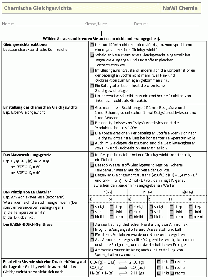 Chemische Gleichgewichte: