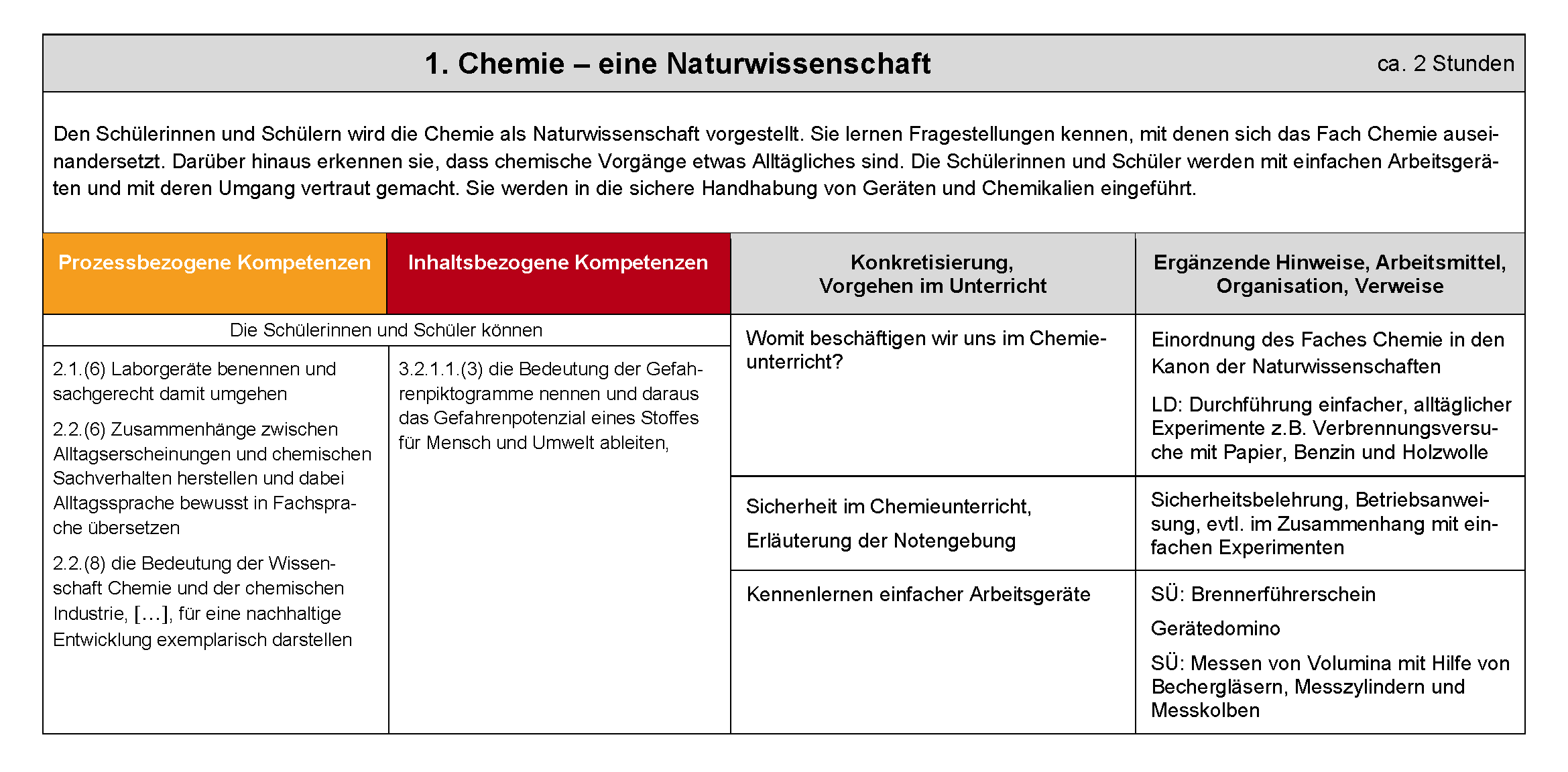 Bildquelle: Vorschlag A, Seite 5, © Landesinstitut für Schulentwicklung, Bildungsplankommission Chemie