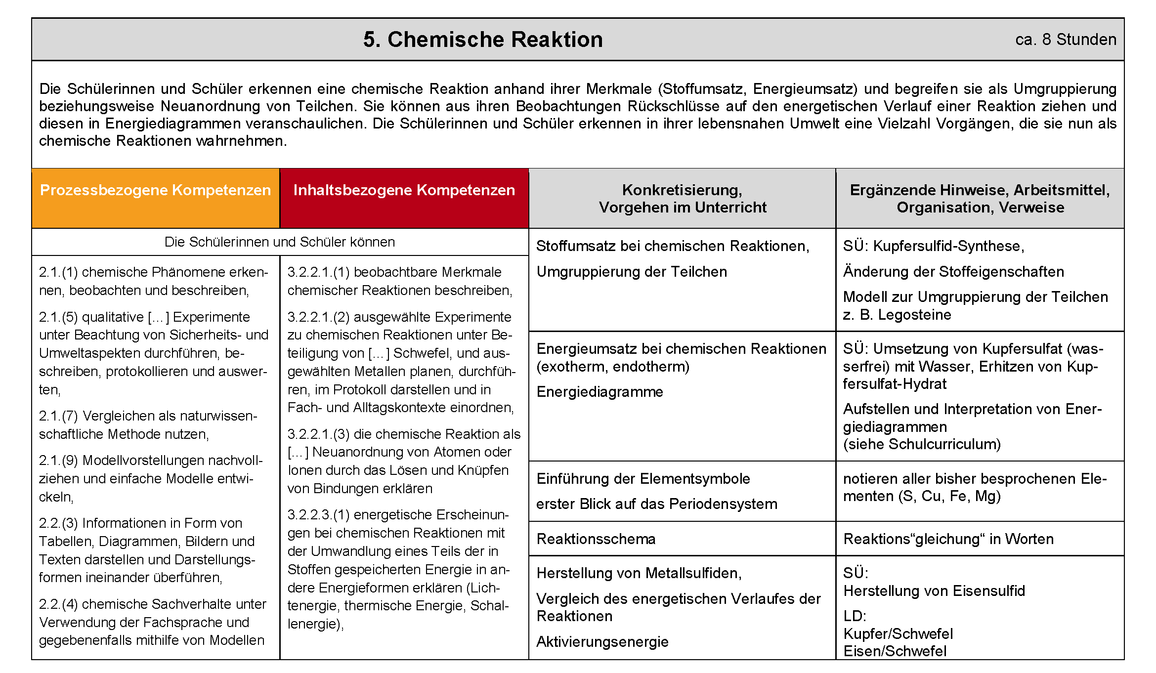 Beispielcurriculum Chemie Klasse 8 Beispiel A: Herunterladen [pdf][902 KB]