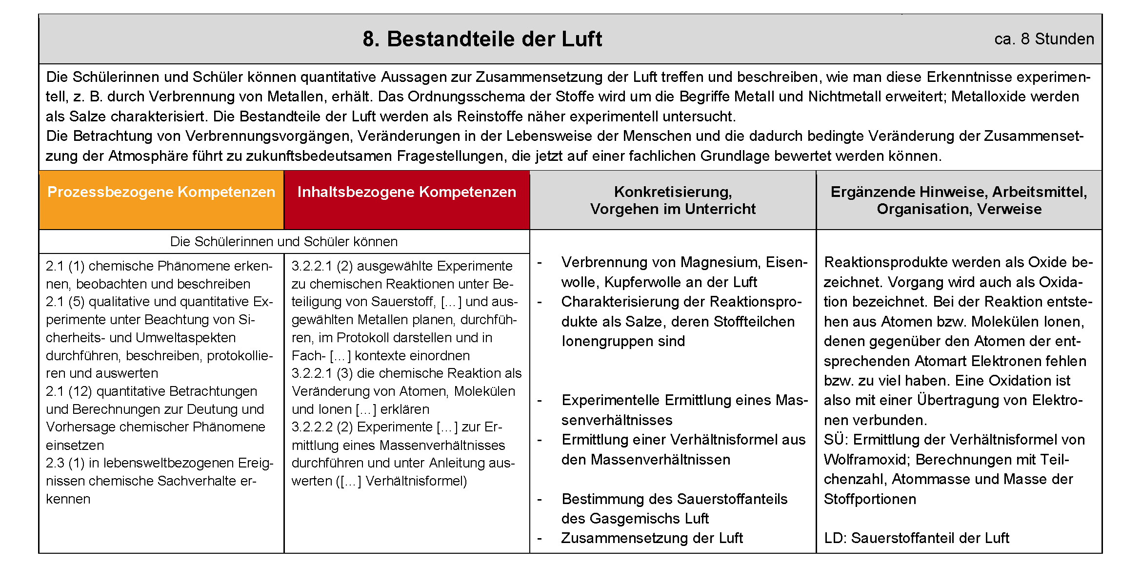 Beispielcurriculum Chemie Klasse 8 Beispiel B: Herunterladen [pdf][807 KB]