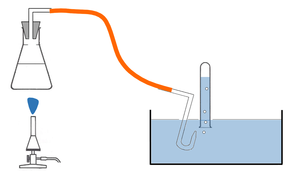 Ein Reagenzglas wird in einer Wanne vollständig mit Wasser befüllt und so umgedreht, dass die Öffnung unterhalb des Wasserspiegels bleibt. Das Wasser kann dann nicht wieder herausfließen. Wenn aber ein Gas in die Öffnung gelangt, führt dies dazu, dass das Gas aufsteigt und das Wasser im Reagenzglas verdrängt wird, bis schließlich kein Wasser mehr im Reagenzglas ist und stattdessen das Reagenzglas ganz mit dem aufsteigenden Gas gefüllt ist.