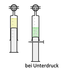 - Durch kräftiges Ziehen am Stempel wird ein Unterdruck erzeugt. Der Stempel kann durch das Loch mit einem Nagel fixiert werden.