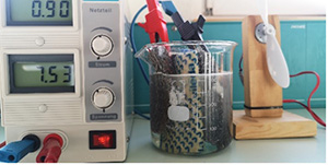 - Elektrolysieren Sie ca. 8-10 min bei 7-10 Volt.