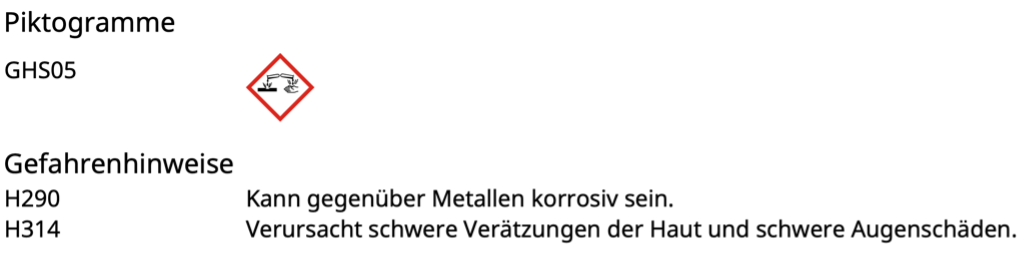 Beurteilung des Gefährdungspotenzials von Rohrreiniger