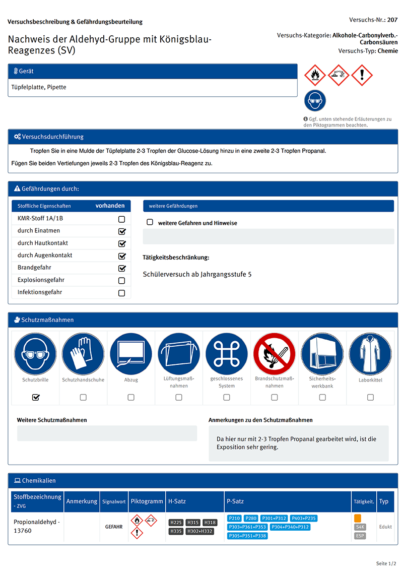 GBU Nachweis der Aldehyd-Gruppe mit Königsblau- Reagenzes