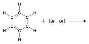 Ergänzen Sie die Reaktionsgleichung für die Bromierung von Benzol. Verwenden Sie Strukturformeln.
