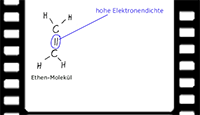 Im Bereich der C=C-Doppelbindung des Ethen-Moleküls existiert eine hohe Elektronendichte. |