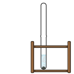 (1) Eine Spatelspitze des Pulvers aus dem Heizbeutel wird mit Wasser versetzt und das entstehende Gas wird durch Darüberstülpen eines zweiten Reagenzglases aufgefangen. Da die Reaktion stark exotherm ist, empfiehlt sich die Verwendung eines Reagenzglasständers.