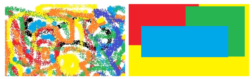 Die Bilddaten eines Farbbildes lassen sich ebenfalls mit der Lauflängencodierung codieren. Betrachte dazu folgende Bilddaten: