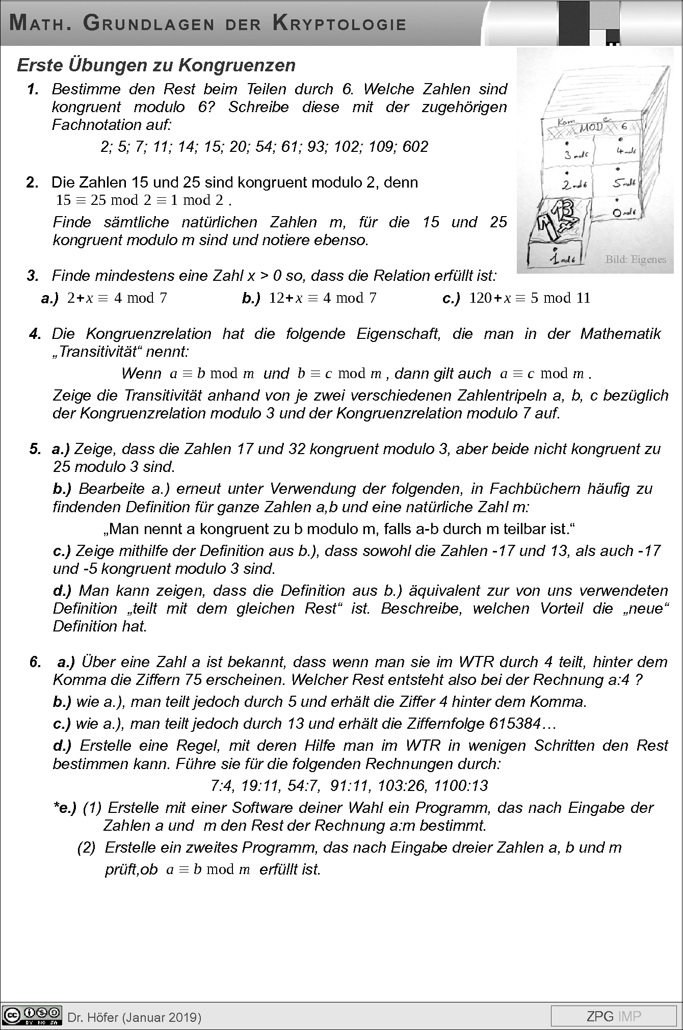 Erste Übungen zu Kongruenzen: Herunterladen [odt][163 KB] Herunterladen [pdf][154 KB]